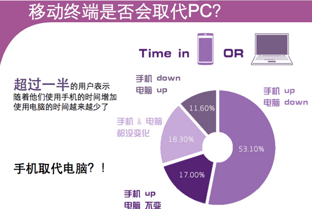5、超过一半的用户说随着他们使用手机时间的增多,使用电脑的时间减少了。