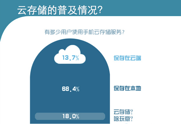 6、有 13.7 的用户会把自己手机中的文件保存到云端,更多用户是保存在本地,甚至不知道云存储是什么。