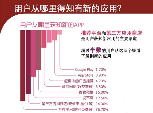 9、用户主要从哪里获得新应用?超过半数是通过推荐平台或第三方应用商店。