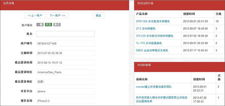 他登录和关注的频率如何?他最关注我们哪些产品、哪些信息?